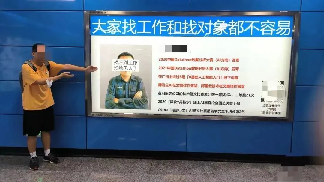 有位聪明的网友把自己的简历投放在广州地铁的广告栏,向来来往往的乘客展示。