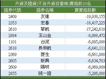 外资卖超前十名。 (资料来源:证交所)