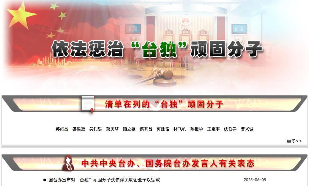 他称,截至目前,大陆已公布「台独」顽固分子14人,「台独」打手帮凶12人。凡是以身试法的「台独」分子,无论身在何处,我们都将采取一切必要措施,依法惩治,终身追责。