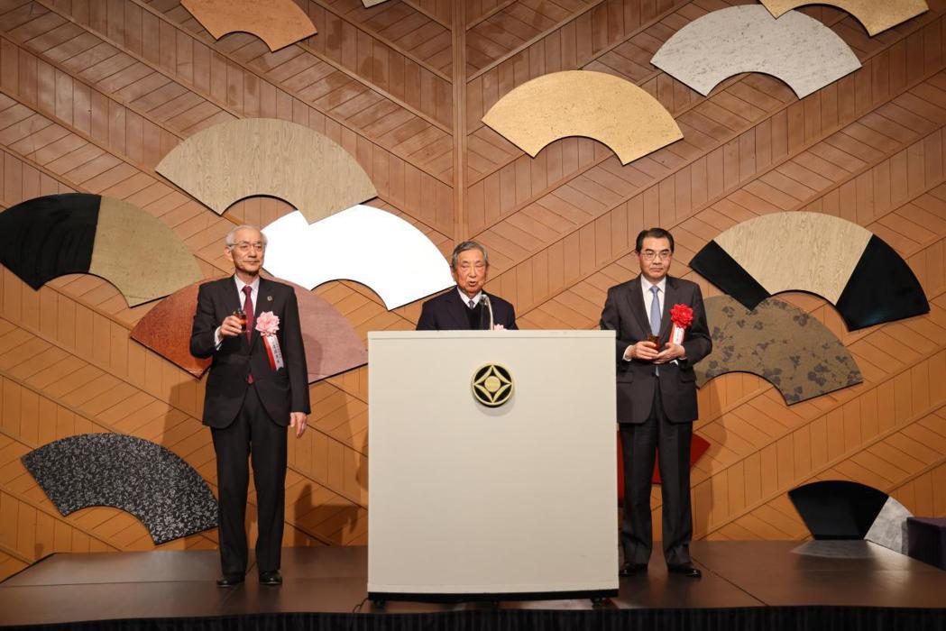 日中经济协会与日本国际贸易促进协会将于7日举行新年会,大陆驻日大使吴江浩(右)将罕见不出席活动。图为吴江浩出席2024年的新年会。(取自大陆驻日大使馆网站)