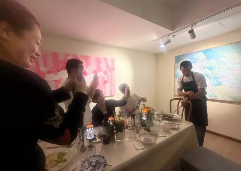 王昀佳早年在国外留学,更习惯吃西餐。所以他做的饭以西餐为主,餐桌上摆了红酒、鲜花,看起来格外浪漫。