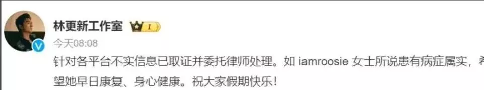 林更新工作室的回应堪称阴阳大师,声明否认一切,并补了一句:“如果相关人士确实有病,那么祝你早日康复。 ”