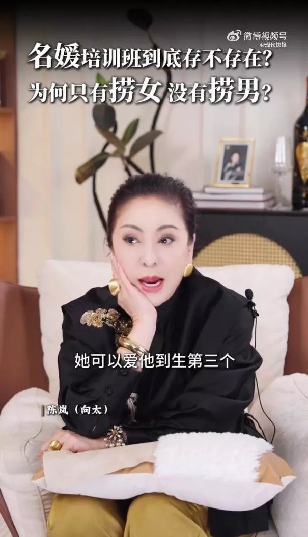 向太在视频里毫不拐弯抹角,上来就表明态度:“很不喜欢‘捞女’这个词”。在她看来,年轻女性嫁给事业成功的男性就被污名化,是一种严重的性别偏见,甚至犀利反问:“为什么只有捞女没有捞男?”对于传得有鼻子有眼的“名媛培训班”,她更是直接否定其存在:“谁有资格教名媛?谁敢跳出来承认?”