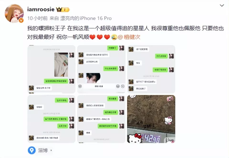 iamroosie一连晒了多张与微信名为林更新的聊天记录,仔细翻看并未发现有任何暧昧或者出格的聊天,更像是两个还不太熟悉的朋友间的调侃。