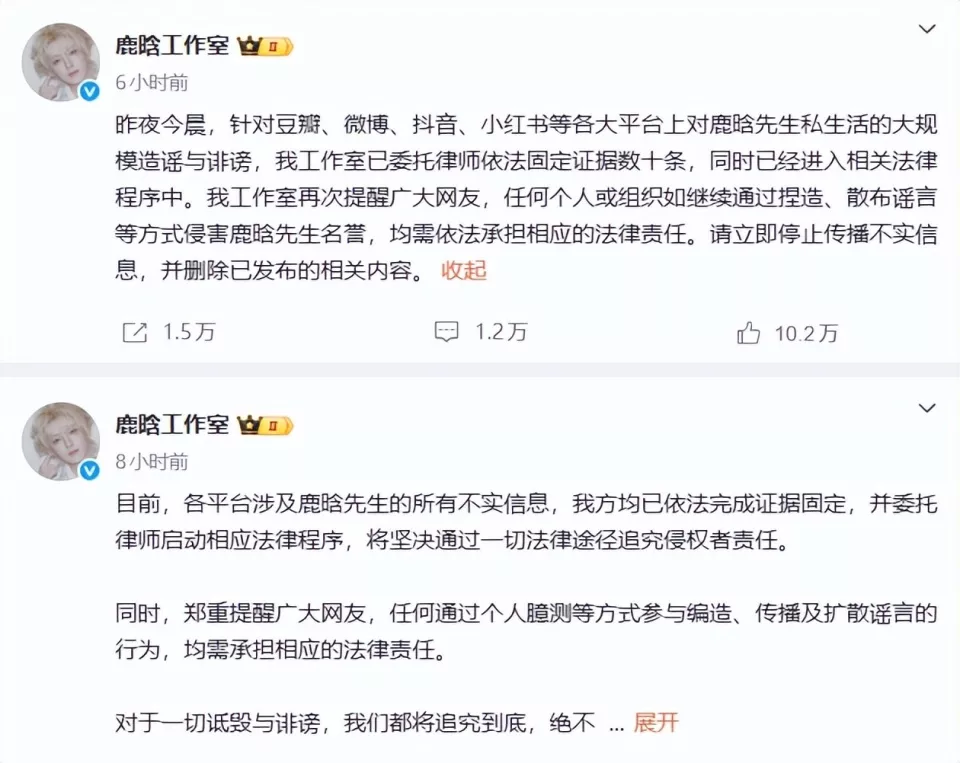 但这件事情的影响程度堪称炸裂了,鹿晗工作室紧急发文澄清,表示将对不实报道启动法律程序。