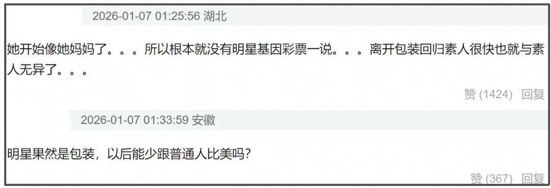 也怪不得网友感叹明星离了包装回归素人,就和普通人也没什么区别了,直接对明星“妈生脸高颜值”祛魅了。