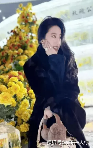 零下二十度的冰雪世界里,刘亦菲穿着黑色皮草像暗夜玫瑰,旁边妈妈浅咖色大衣衬得皮肤白到发光。