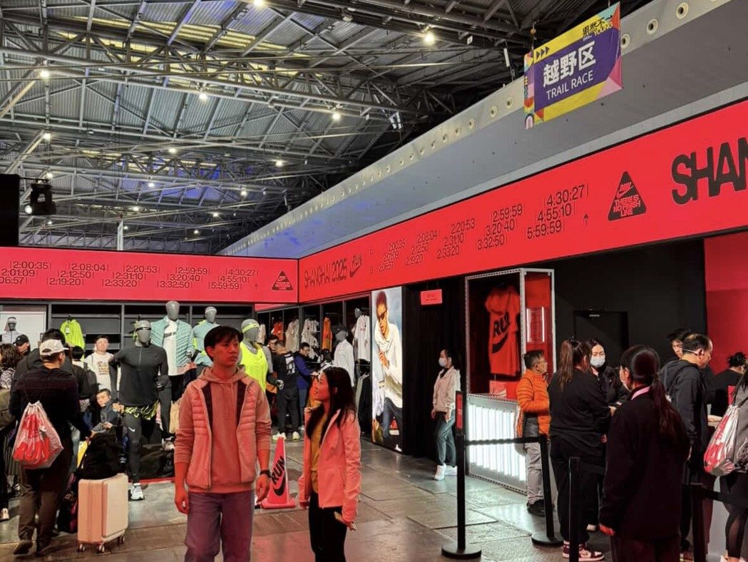 图为参加2025上海马拉松的选手们29日于上海世博园区领取比赛物资。记者谢守真/...