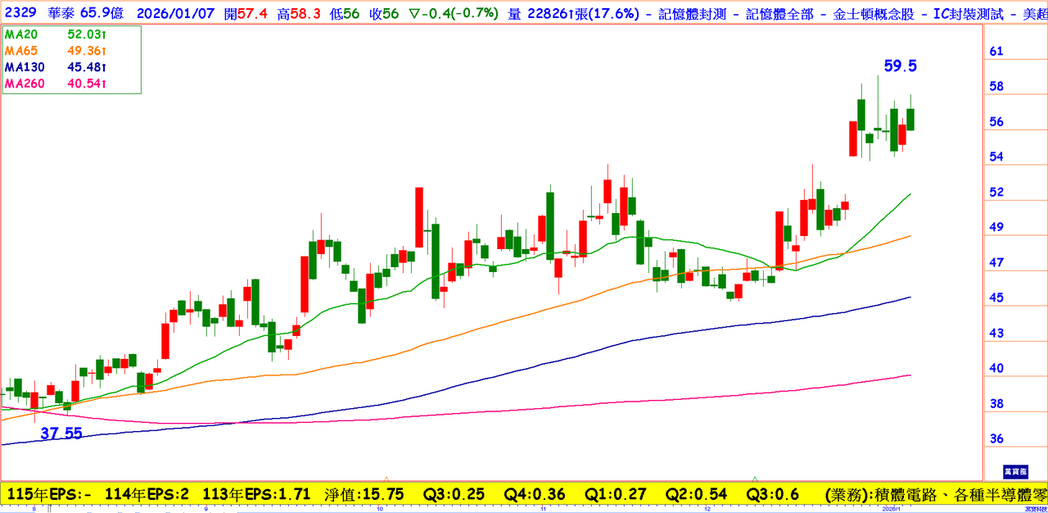 半导体封测及EMS厂华泰电子(2329)受季节性因素影响,Q4营收估较Q3略为降温,但2025年营收仍将写下新高,展望后市,受惠半导体封测委外代工订单持续涌入,华泰目前产能爆满,看好公司2026 Q1营收有望淡季不淡,有望较2025年同期成长双位数百分比。