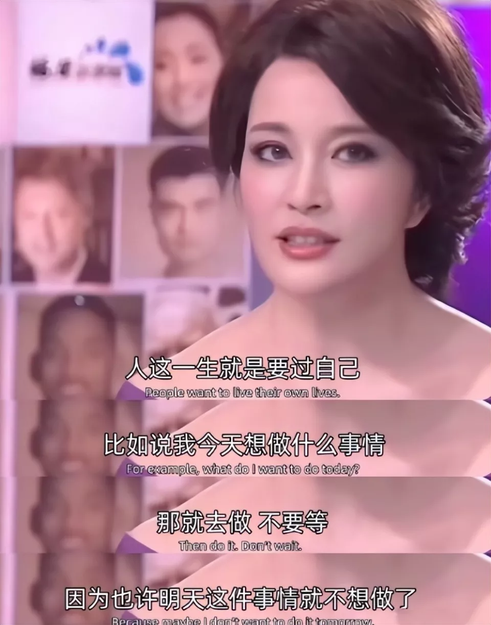 而且她还说过:“人这一生就是要过自己,比如我今天想做什么事情,那就去做,不要等,因为也许明天这件事就不想做了。”